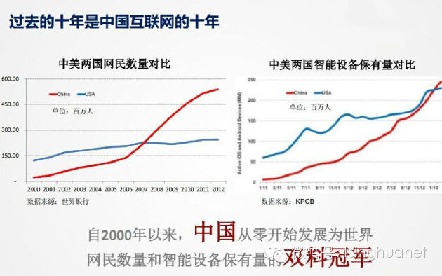 这两张图可以看出,中国只用了七八年的时间,PC互联网民就超过了美国;中国更仅用了不到两年时间,移动智能手机的拥有量也超过了美国。这才是中国的互联网人口结构,决定了互联网什么行业可以做,什么行业过时了。人口结构决定一切,一切从这两张图开始。