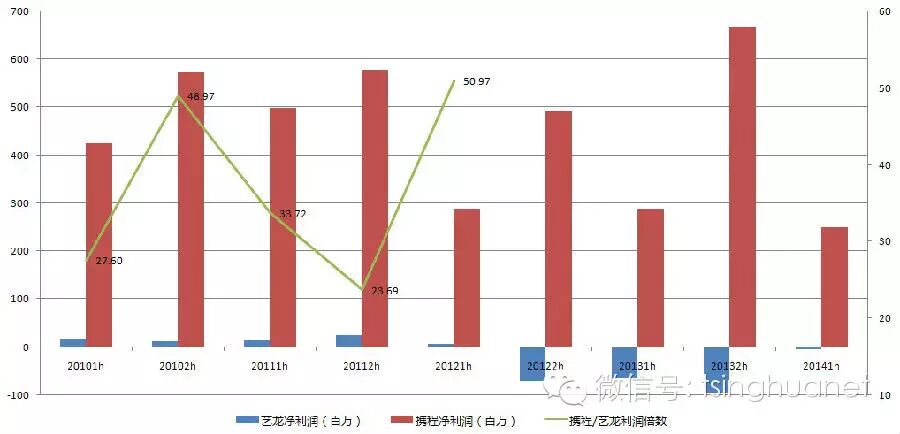 至2012年下半年携程全面开始跟进艺龙酒店价格战后,艺龙在此陷入了亏损的泥潭,并且有逐步扩大的趋势,而2012年上半年略微盈利的原因主要来自同程毁约带来的3000万额外收入。