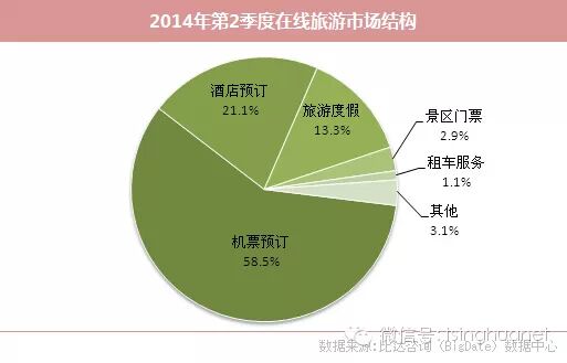 随着中国经济发展的稳步增长,人民币内贬外升降低出境旅游成本,超过40个国家对中国游客试行免签或落地签,旅游特别是长途游成为在线旅游的一个新的趋势,2014年Q2旅游度假占比为13.3%,仅次于机票、酒店。