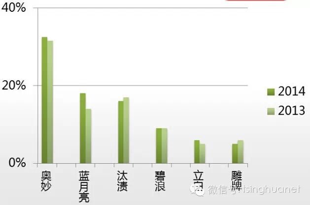强化巩固三四线市场的奥妙则比去年略有上升,稳居第一。