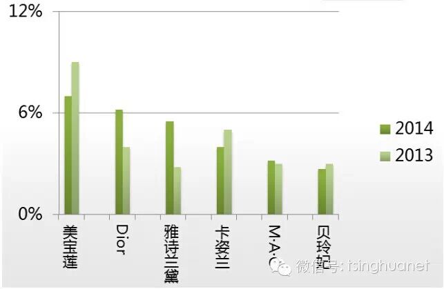 价格不再是吸引彩妆用户的最大理由。价位较高的Dior和雅诗兰黛在今年的调查中分别上升到了第二和第三,而本土彩妆领导品牌卡姿兰排名第四。这说明高端品牌正在发挥对女性白领的吸引力。