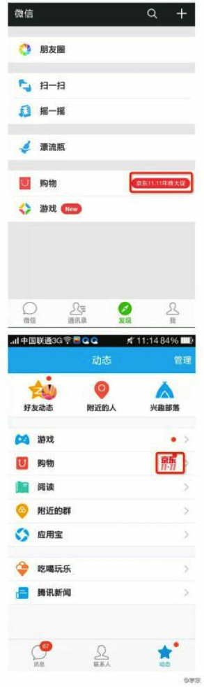 作为一个去中心化入口,京东微店还兼具中心化的优势。另外,每到大促,微信官方大入口(微信的一级栏目里的入口)会出现红点提升,比如“双十一狂欢节”,“双十二大促”,由于京东微店与微信大入口已经彻底打通,这样就会引导更多用户进来。