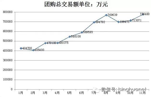2013年团购交易额为356亿,截至11月,2014年交易额已经达到776亿。纵观2014年数据,美团、大众点评、百度糯米交易额有显著提升,拉手窝窝满座增幅不明显。