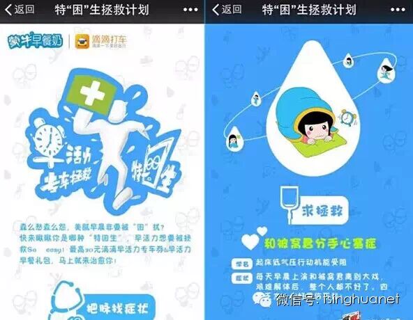 蒙牛早餐奶“早活力专车拯救特困生”,让消费者通过线上H5领取免费的滴滴专车券,再到线下呼叫早活力专车领取“早活力急救包”早餐,紧紧抓住了“早活力”的品牌卖点和用户痛点,将二者实现了有效的平衡。